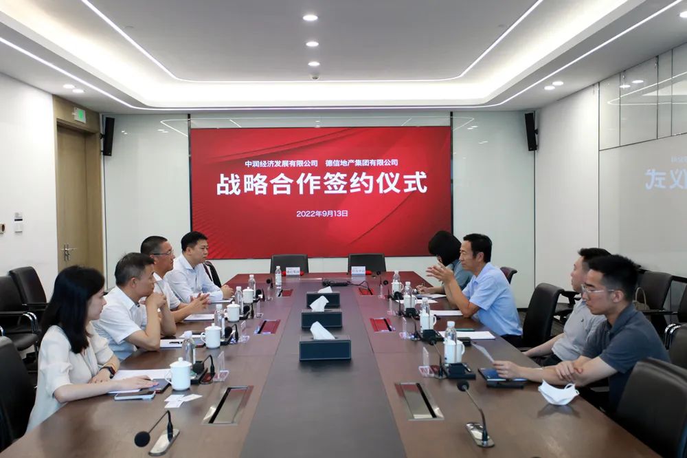 2022年9月13日下午,德信地产集团有限公司与中润经济发展有限责任公司于杭州德信总部签署《战略合作协议》。